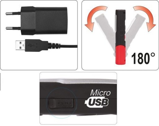 Lampa wykonana z wytrzymałych materiałów, m.in. ABS i poliwęglanu zapewnia klasę ochrony mechanicznej IK07 oraz klasę szczelności IP54. Obrotowy korpus, haczyk oraz 2 magnesy umożliwią właściwe ustawienie strumienia światła. Dodatkowym atutem jest stacja magnetyczna służąca do bezprzewodowego ładowania lampy.