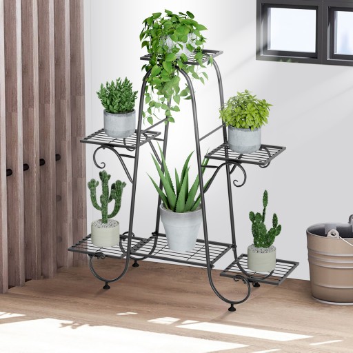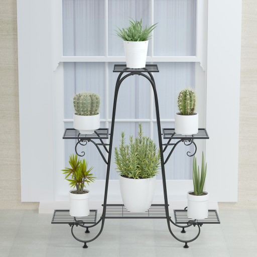 【Prosty minimalistyczny styl】Stylowy stojak na rośliny unho,pozwala 6 roślinom mieć otwarte przestrzenie, aby uzyskać światło i wodę i lepiej rosnąć. Sprawia, że balkon, patio lub ogród są romantyczne i stają się rajem. Zarówno wewnątrz, jak i na zewnątrz. Znakomicie czyste i zakrzywione linie zapewniające piękny wygląd, prosty styl uzupełnia różnorodność wystroju domu. W połączeniu z dowolnymi roślinami zieleni do dekoracji.Używany również jako regał do przechowywania książek.