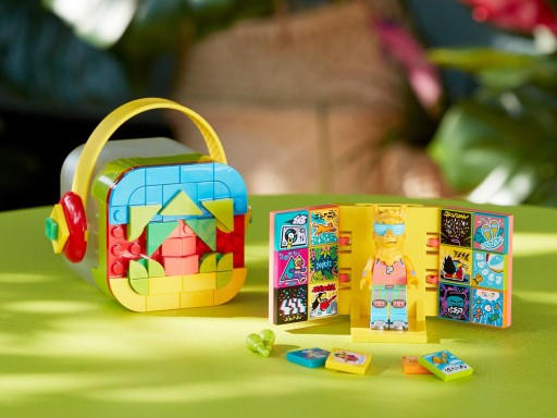 Zabawa w każdym miejscuDzieci zprzyjemnością ozdobią model BeatBox klockami LEGO. Mogą wykorzystać elementy takie jak drzewo palmowe, rolki oraz marakasy albo stworzyć własne dekoracje. W składanym BeatBoxie można przechowywać BeatBity i minifigurkę, więc zestaw doskonale nadaje się do zabrania w podróż.