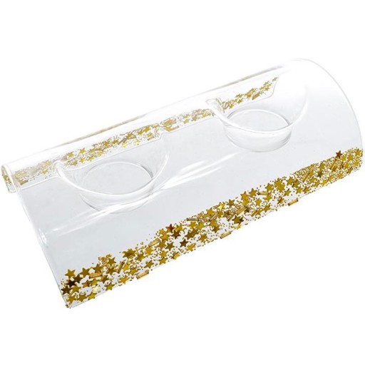 - Gustowny i elegancki szklany świecznik na 2 świeczki prześlicznie przyozdobiony.