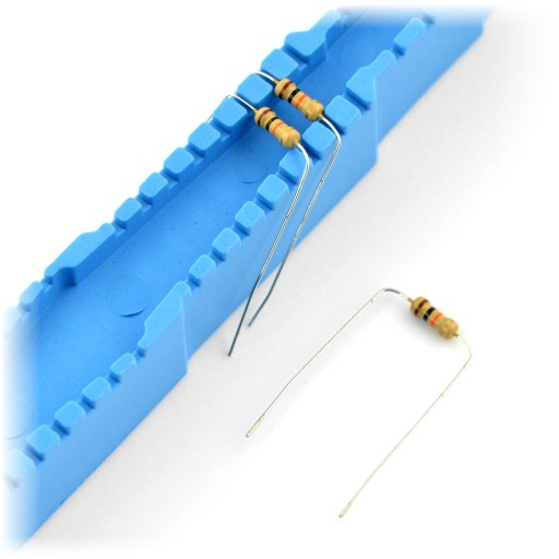 Uniwersalne urządzenie umożliwia precyzyjne zaginanie nóżek osiowych elementów elektronicznych, np. rezystorów, kondensatorów i cewek.