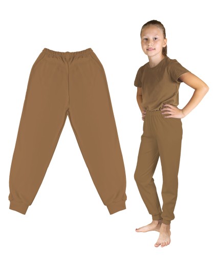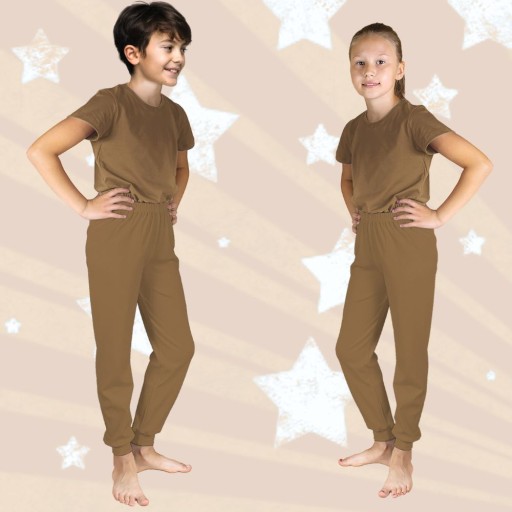 LEKKIE SPODNIE W 100% BAWEŁNIANE BRĄZOWE 104 CM