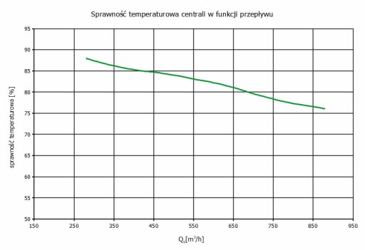 - SPRAWNOŚĆ REKUPERATORA OD 65% do 92% (parametr zależy od różnicy temp.przepływu )