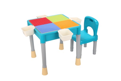 Prze miotem aukcji jest wielofunkcyjny stolik do klocków typu lego jak i stolik edukacyjny dla dzieci 3 w 1.