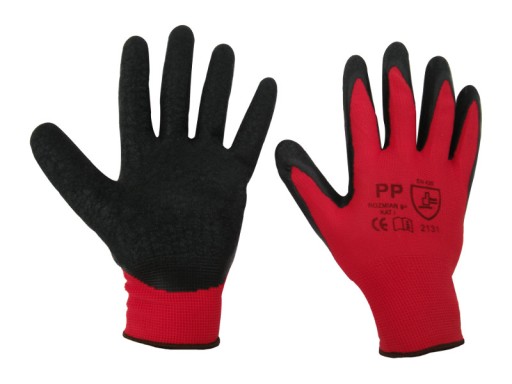 - rękawice ochronne wykonane z poliestru, powleczone lateksem o chropowatej strukturze, która zapewnia doskonałą chwytność, nie powodując usztywnienia rękawicy