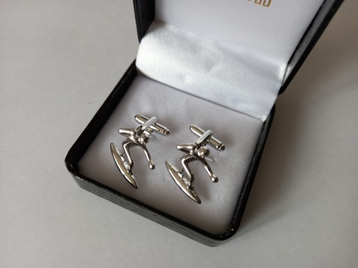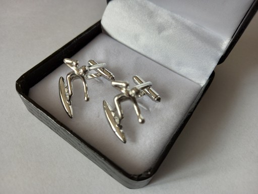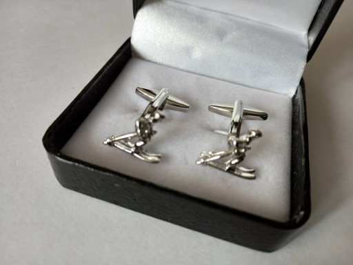 Oryginalne spinki do mankietów koszuli marki Exciting w kształcie narciarza. Spinki zostały zapakowane w ekskluzywne pudełko Exciting Bardzo ciekawe spinki, idealne na prezent.