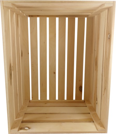 Skrzynka jest nowa, zbita z grubych desek - sklejka (z drzewa liściastego) o grubości ok. 1 cm, bardzo solidna.