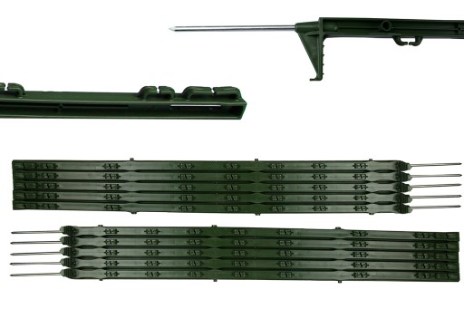- Na zaczepach palików rozwieszamy plecionkę. Wysokość na jakiej zawieszamy plecionkę jest zależna od wielkości naszego zwierzaka. Przy budowie ogrodzenia np. dla psów należy ją zawiesić na 2-3 poziomach (pierwszy 15 cm, drugi na wysokości nosa psa). Dla bydła wystarczą 2 poziomy - wyżej niż w poprzednim opisie. Należy pamiętać o tym, żeby plecionka niczego nie dotykała (krzaki, trawa, itp.)