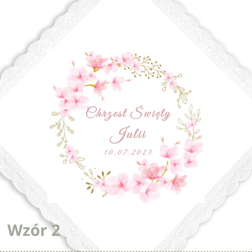 - wzór szatki (jeżeli na szatce imię dziecka ma być odmienione to należy podać właściwą formę. W przypadku braku informacji umieścimy imię jak na świecy (w mianowniku).
