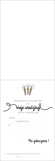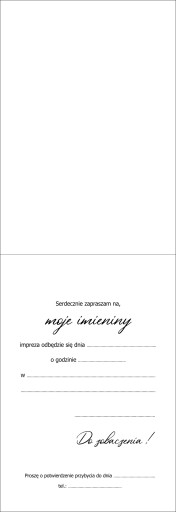 Zaproszenie składa się ze sztywnej kartki, zadrukowanej z tekstem do własnoręcznego wypisania.
