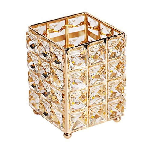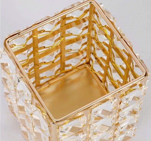Stylowy organizer w stylu glamour na pędzle do makijaż, przybory i kosmetyki. Artystycznie wykonany pojemnik, oprócz tego, że cieszy oko i jest niebywałą ozdobą toaletki jest także praktyczny. Można w nim przechowywać pędzle do makijażu, różnego rodzaju kosmetyki w postaci kredek, a także przedmioty codziennego użytku takie jak długopisy, nożyczki i inne drobiazgi. Wykonany jest ze trwałego tworzywa ABS imitującego kryształ oraz aluminium. Piękny wygląd sprawia, że może zdobić zarówno toaletkę, łazienkę jak i salon. Może posłużyć również jako świecznik.