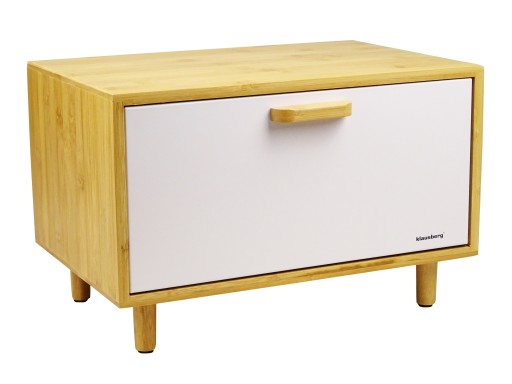 - Korpus z drewna bambusowego, drzwiczki otwierane do dołu, wykonane z lekierowanej proszkowo stali..