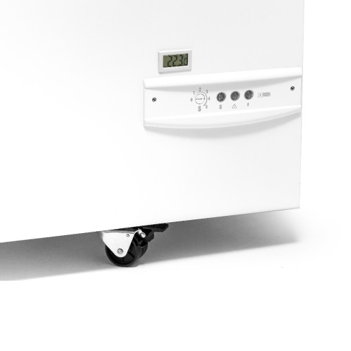 Dołączony zestaw kółek z hamulcem ułatwi transport lub korektę ustawienia urządzenia. Wydajny system chłodzenia oraz nowoczesny materiał izolujący pozwolił na uzyskanie wysokiego stopnia energooszczędności.