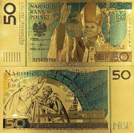 50zł Jan Paweł II Pozłacany Kolekcjonerski Banknot
