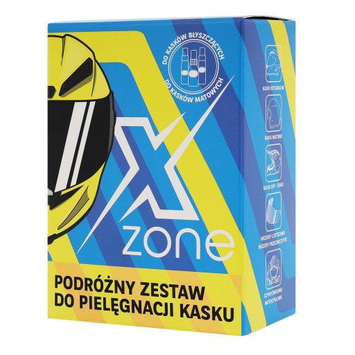 Produkty Xzone do kasku to nowa zaawansowana formuła, dzięki której Twój kask odzyska czystość , blask i świeżość. Poręczny zestaw został stworzony dla każdego motocyklisty, zmieści się do kieszeni oraz do schowka w motocyklu. Składa się z dokładnie opracowanych produktów w kompaktowych opakowaniach, podróżnego woreczka oraz ścierek z mikrofibry o różnej gramaturze i wielkości.