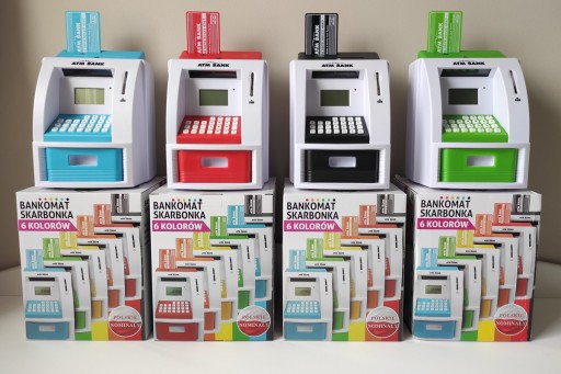 ☑️ Skarbonka w kształcie bankomatu z kartą bankomatową i blokadą na PIN