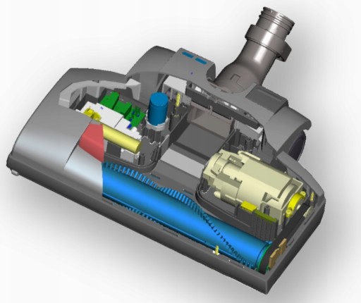 Wałek szczotki elektrycznej jest napędzany silnikiem elektrycznym oraz na całej swojej długości ma dwa faliste paski szczotek i to połączenie powoduje bardzo silne trzepanie powierzchni, a niczym nie zakłócony przepływ powietrza odkurzacza, dopełnia super odkurzania.