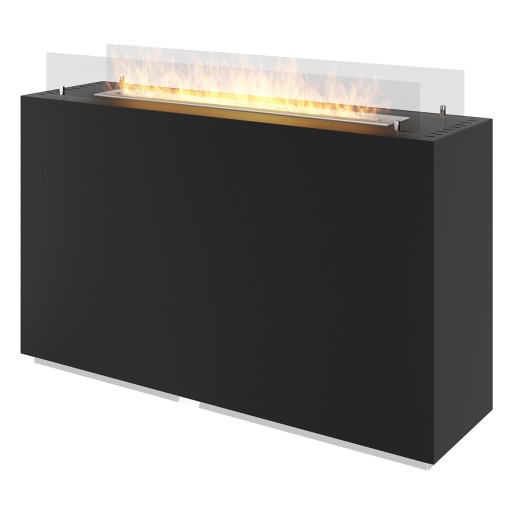 Biokominek wykonany ze stali kotłowej o grubości 2 mm lakierowanej proszkowo farbą termoodporną w kolorze czarny mat strukturalny.