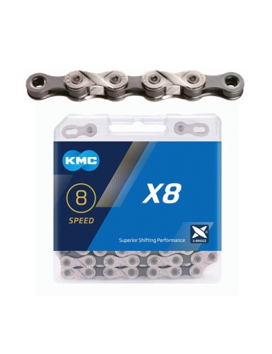 Łańcuch KMC X8 srebrno-szary 114 ogniw + spinka 6/7/8S