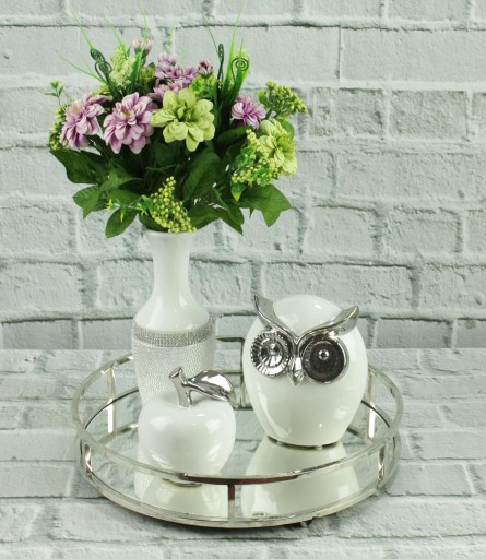 Produkt z ceramiki, posiada delikatne wady fabryczne (widoczne tylko z bliska) w postaci małych kropek, przetarć lub nadlania farby
