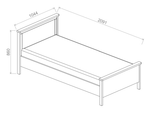 Wygodne w użytkowaniu łóżko w klastycznej stylistyce. W cenie łóżka komfortowy materac bonellowy. Mebel wykonano z wytrzymałej płyty laminowanej wykończonej trwałym obrzeżem ABS. Do skompletowania z jedną lub dwiema szufladami na pościel (LN-09).