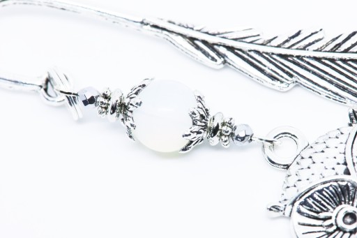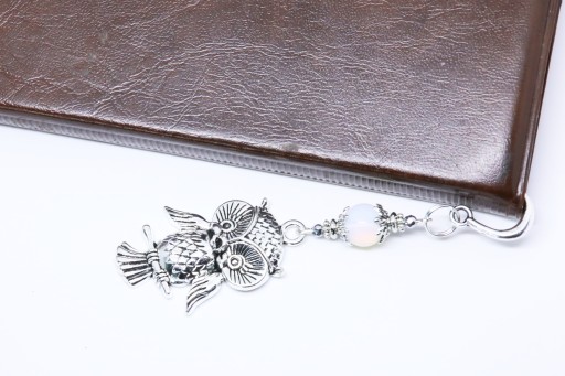 Elegancka zakładka do książki z zawieszką w kształcie sowy z dodatkiem opalitu i hematytu.