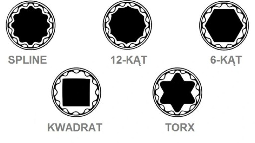 Zestaw nasadek "SPLINE" przeznaczony do odkręcania wielu rodzajów nakrętek: