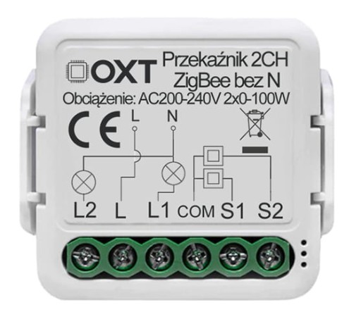 - Moduł OXT mini przekaźnik 2 obw. bez N ZigBee TUYA