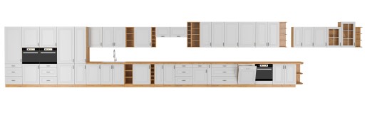 Istnieje możliwość dokupienia innych szafek (rozmiar, kolor), aby skompletować inny układ lub mniejszą kuchnię.