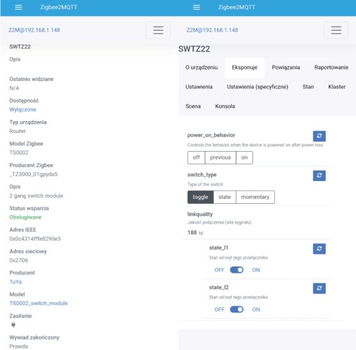 Poniżej przedstawiamy screeny z aplikacji Home Assistant ZigBee2MQTT!