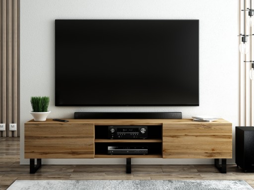 ШКАФ ДЛЯ ТЕЛЕВИЗОРА LOFT 180 ДУБ ВОТАН/МАТОВЫЙ ЧЕРНЫЙ ПРОМЫШЛЕННЫЙ, СОВРЕМЕННЫЙ СТИЛЬ
