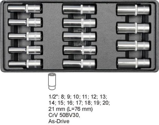 WKŁAD DO SZUFLADY NASADKI DŁUGIE 8-21MM 1/2" 14CZ. YT-5539 YATO
