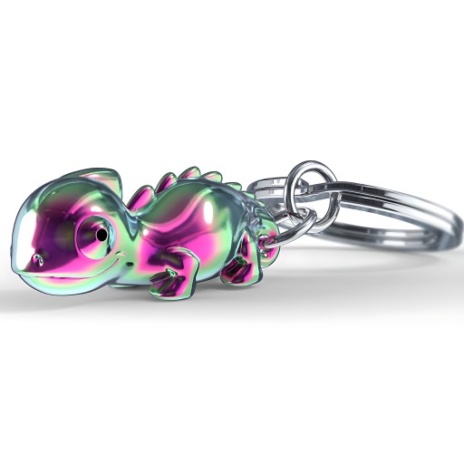 Brelok kameleon to produkt niezwykły – nie ma co prawda zdolności do swobodnej zmiany kolorów na te typowe dla otoczenia, aczkolwiek genialnie oddaje jego charakter i pozostałe cechy fizyczne. Perfekcyjnie odwzorowany każdy detal typowy dla kameleona: wypukłe oko, grzbiet zaparzony w ''płetwę'' na szyi, wypustki wzdłuż kręgosłupa, długi ogon. W celu podkreślenia możliwości adaptacyjnych gatunku brelok kameleon jest wielobarwny.