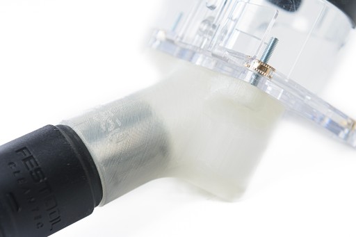Przedmiotem sprzedaży jest drukowany adapter, dzięki któremu można podłączyć odkurzacz do prostokątnej podstawy frezarki krawędziowej Bosch GKF 550.