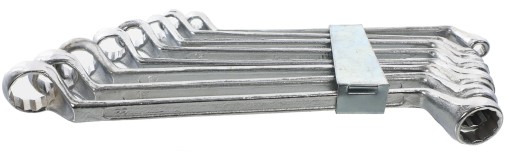 Wysokiej jakości zestaw kluczy oczkowych, głęboko osadzonych. Klucze zostały wykonane z stali co czyni je odpowiednio wytrzymałe.