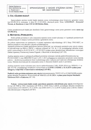 Sprawozdanie z badań stężenia ozonu przez Akredytowany Zakład Badawczy