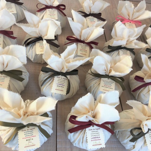 Ogromną zaletą kąpieli ziołowych jest fakt, że są łatwe w przygotowaniu. Przekonaj się o tym przygotowując jedną z nich. Zalej w garnku lub w dzbanku emaliowanym sakiewkę ok. 3 – 4 litrami gorącej wody i parz pod przykryciem 20 minut. Potem wlej ok. 2 l naparu do wanny do połowy napełnionej wodą wraz z woreczkiem, który jeszcze kilkakrotnie wyciśnij. Podczas relaksującej kąpieli dodatkowo możesz zrobić sobie oczyszczający masaż ciepłą sakiewką z ziołami. Skóra staję się gładka i oczyszczona. Po kąpieli nie opłukujemy ciała tylko osuszamy ciemnym ręcznikiem i smarujemy się ulubionym balsamem.