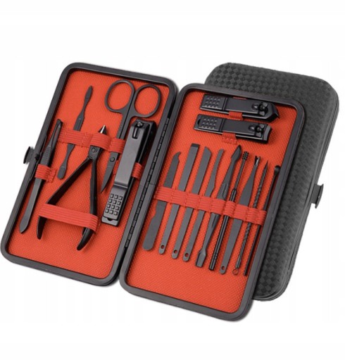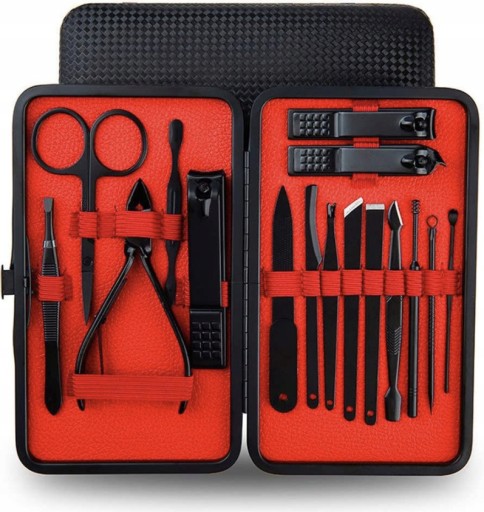 - KOMPLETNY ZESTAW NA KAŻDĄ SYTUACJĘ - zestaw składa się z 16 elementów. Etui + 15 narzędzi; służących do pielęgnacji dłoni, stóp, a także twarzy. Poniżej znajduje się dokładny spis narzędzi.