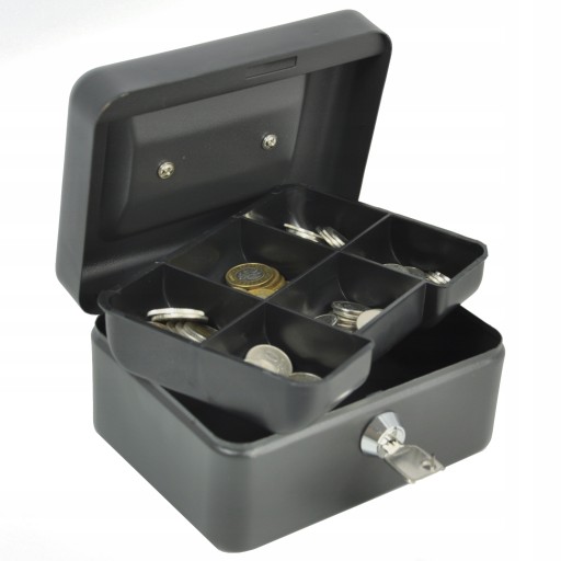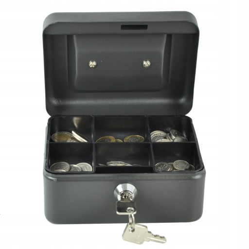 ✅ Kasetka metalowa na pieniądze z wkładem na monety/drobiazgi - 152 x 115 x 80 mm