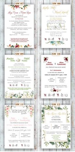 - Zaproszenia mogą być także do samodzielnego wypisania Gości, miejsca, daty (wykropkowane).