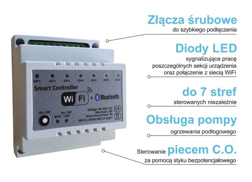 - w przypadku niespodziewanej awarii sieci WiFi sterownik posiada możliwość komunikacji ze smartfonem za pośrednictwem Bluetooth