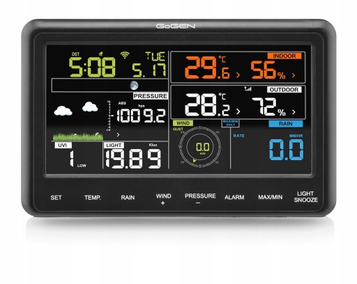 Stacja pogodowa zadowoli każdego, kto chce być na bieżąco, jeśli chodzi o praktycznie wszystkie parametry związane z pogodą. Dzięki niej sprawdzisz nie tylko temperaturę i ciśnienie, ale również wiele innych przydatnych danych. Jeśli marzy Ci się dostęp do aktualnych informacji związanych z warunkami pogodowymi, to stacja GoGEN będzie idealna dla Ciebie.