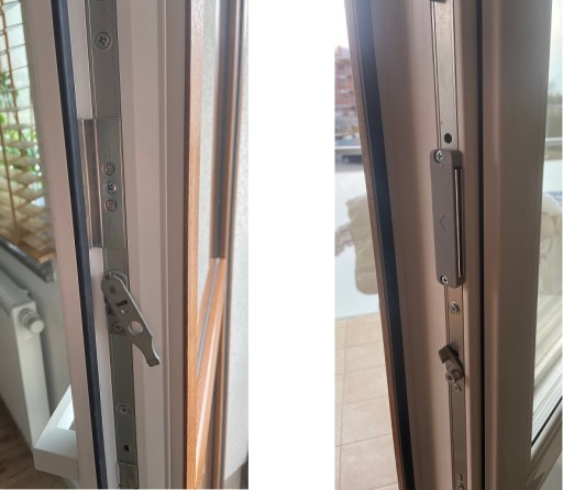 ZATRZASK PRZEZNACZONY TYLKO DO OKIEN/DRZWI BALKONOWYCH PCV DWUSKRZYDŁOWYCH Z JEDNĄ KLAMKĄ WYPOSAŻONYCH W SREBRNE OKUCIA ROTO