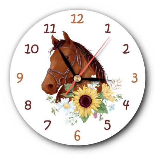 ZEGAR DO POKOJU DZIECIĘCEGO Z KONIEM I KWIATAMI