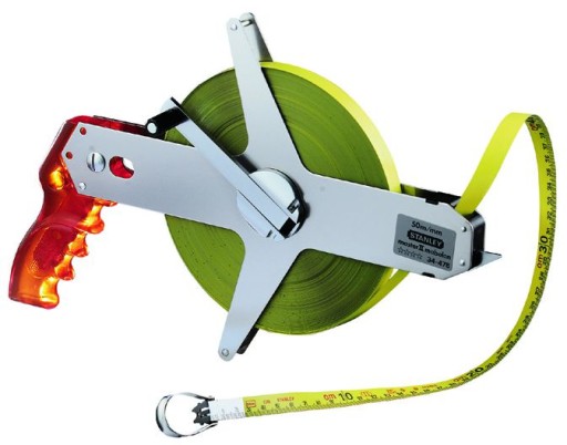 Stalowa miara budowlana Stanley do mierzenia większych odległości.