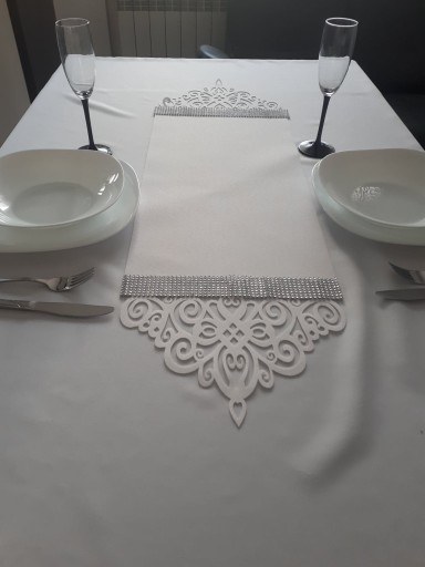 Przedmiotem sprzedaży jest piękny bieżnik ażurowy. Wzór jest wycinany za pomocą nowoczesnej metody laserowej, dzięki której uzyskujemy idealną, gładką i niestrzępiącą się krawędź. Elegancka dekoracja twojego stołu! Wzory naszych bieżników są odpowiednikami paneli ażurowych dzięki czemu mogą państwo skompletować zestaw o podobnych wzorach pasujących do wystroju. Rozmiar 30/98 cm.