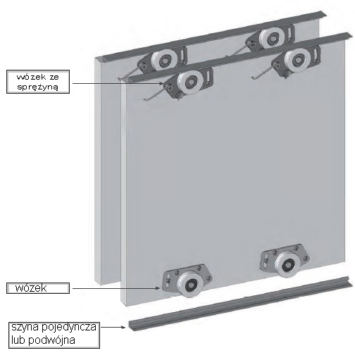 Komplet wózków (do jednej sztuki drzwi) do płyty 16/18/22/25 mm