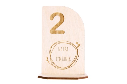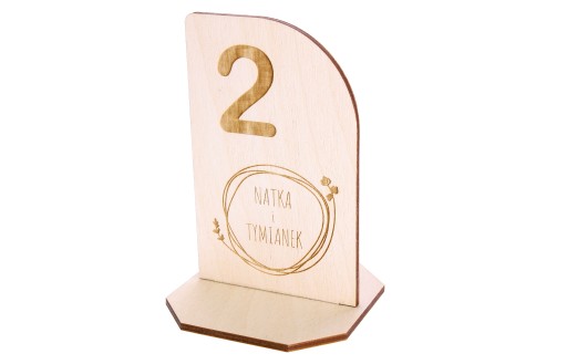 Numeracja stolików wykonana z drewna z grawerem logo lub dowolnym napisem.