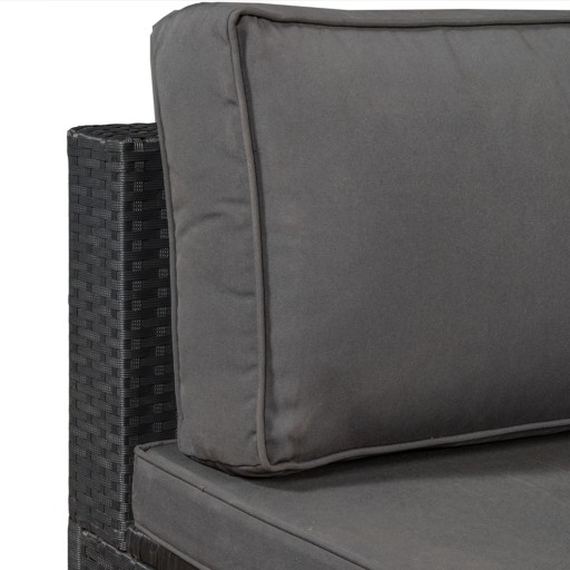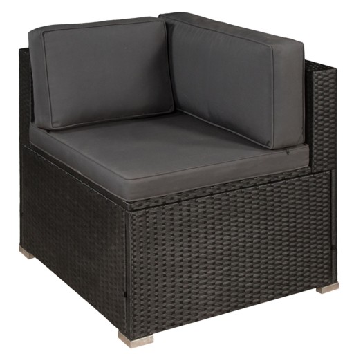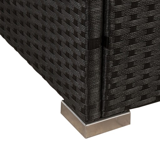 Dzięki polyrattanowemu narożnikowi ogrodowemu czarnemu przekształcasz swoją przestrzeń na zewnątrz w stylowe miejsce do relaksu i odpoczynku. Wytrzymała konstrukcja stalowa i odporne na warunki atmosferyczne włókna z poli rattanu sprawiają, że meble ustawione na tarasie pod altaną czy w ogrodzie bardzo ładnie się prezentują. Mały stolik ze szklanym blatem służy jako miejsce do postawienia żywności i napojów. Grube poduszki siedziska i oparcia gwarantują trwały komfort. Wieczory towarzyskie z rodziną, przyjaciółmi lub sąsiadami będą wspaniałym relaksem na świeżym powietrzu.