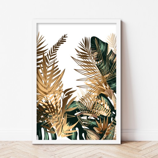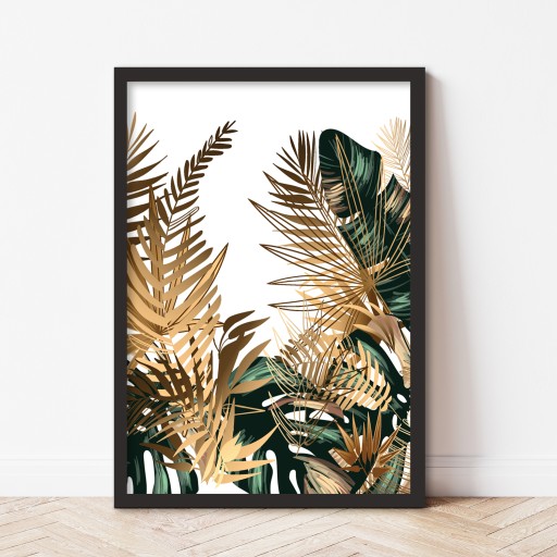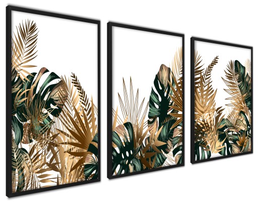 КОМПЛЕКТ ИЗОБРАЖЕНИЯ ПОСТЕР ЗОЛОТЫЕ ЛИСТЬЯ МОНСТЕРЫ XXL